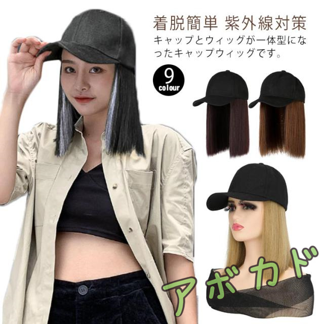 送料無料 帽子付きウィッグ キャップウィッグ 帽子ウィッグ ショート ミディアムヘア インナーカラー ミディアムボブ かつら フルウィッグ レディース 女性 キャップ付き 帽子一体型 紫外線対策 イメチェン 着脱簡単 単色 黒 茶 金色 青 かわいい キュート ガーリー カジュア
