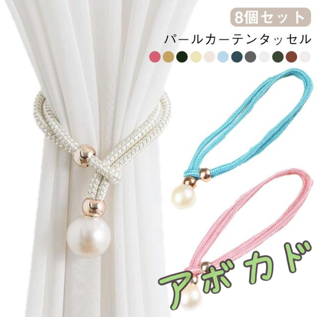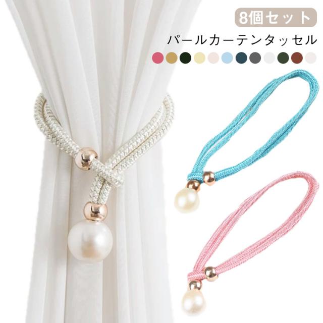 8個セット カーテンタッセル パール カーテン留め カーテンホルダー 穴あけ不要 カーテン タッセル カーテンアクセサリー カーテン止め 紐 シンプル 大粒パール かわいい インテリア 雑貨 送料無料
