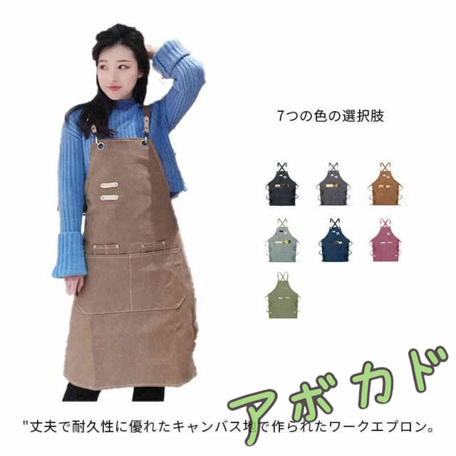 エプロン キャンバス ワークエプロン 男女兼用 前掛け 作業用 カフェエプロン 職人 フリーサイズ ストラップ調整可能 コンビニ 美容師 DIY アウトドア 耐久性 レディース メンズ 帆布 頑丈 厚手 ポケット付き おしゃれ ロング丈 ナチュラル シンプル 美術 絵具 油絵