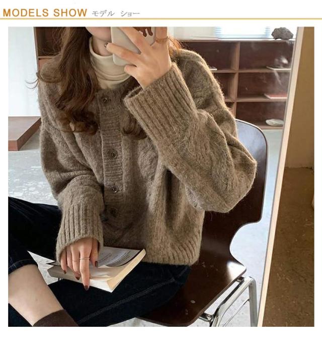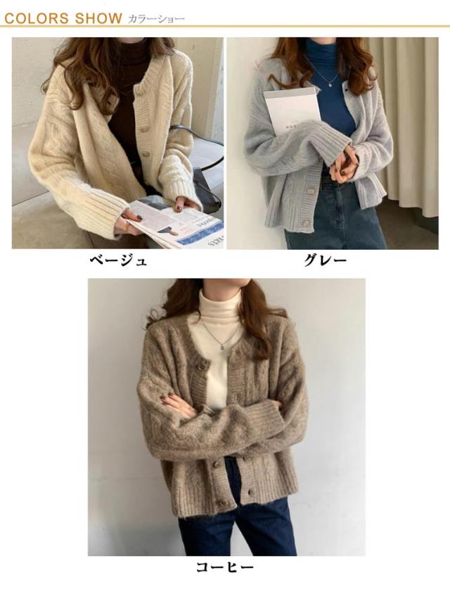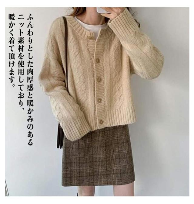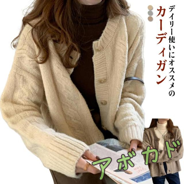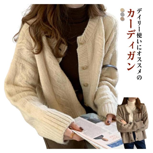 ニット カーディガン レディース ざっくり編み ケーブルニット ショート丈 セーター 秋冬 秋 冬 厚手 羽織り 長袖 トップス ケーブル編み ニットカーデ 暖かい あったかい ベージュ グレー コーヒー