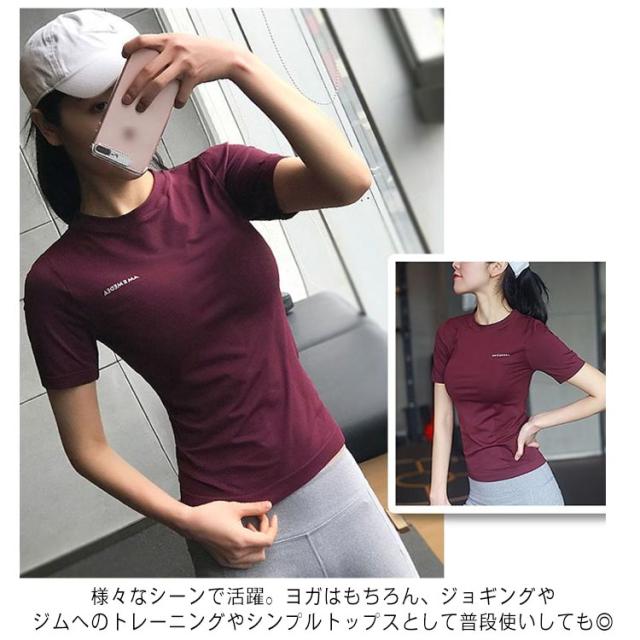 半袖tシャツ 運動着 レディース おしゃれ 半袖 Tシャツ スポーツウェア トップス ヨガウェア スリム フィット おしゃれ 薄手 速乾 夏 春 かわいい ジム フィットネスウェア ジムウェア トレーニング ピラティス ランニング 登山 シンプル 着?せ ストレッチ 送料無料