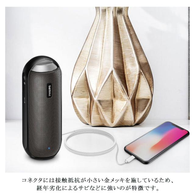 | 車内で手軽に音楽を楽しめるApple製品用AUXケーブル! スピーカーやカーステレオなどにiPhoneやiPadを直接接続ができるLightningコネクタ付きで、手軽に音楽を楽しめます。 ケーブルの長さは1mと、車のオーディオ端子やスマートフォンへ接続するときに邪魔にならない長さです。 断線しにくく耐久性が高いので、長く愛用できます。 コネクタには接触抵抗が小さい金メッキを施しているため、経年劣化によるサビなどに強いのが特徴です。 直接カーオーディオに接続できるため、Bluetoothなどよりも高音質な音楽が楽しめます。 スマホのナビをカーオーディオに接続すれば、ナビとしても使用できます。 | |