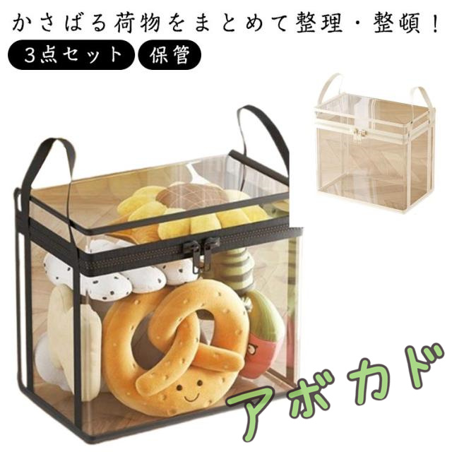 ぬいぐるみ収納 3点セット 収納ケース クリアケース 収納ボックス おもちゃ 保管 整理 持ち手付き 小物 衣類 洋服 タオル 持ち運び便利 クローゼット収納 上開き 押入れ収納