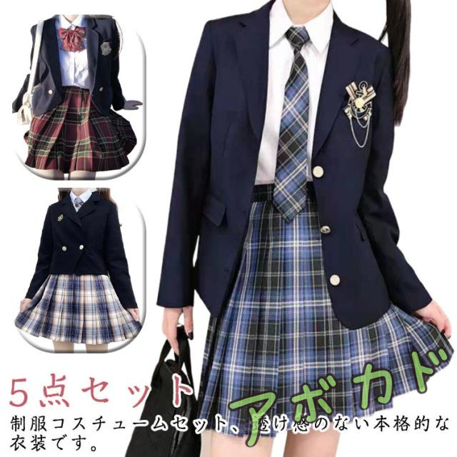 | サイズについての説明 | サイズ表は画像をご参照ください 5点セット内容:ブレザー、スカート、シャツ、リボン或いネクタイ、バッジの5点セットです。 |