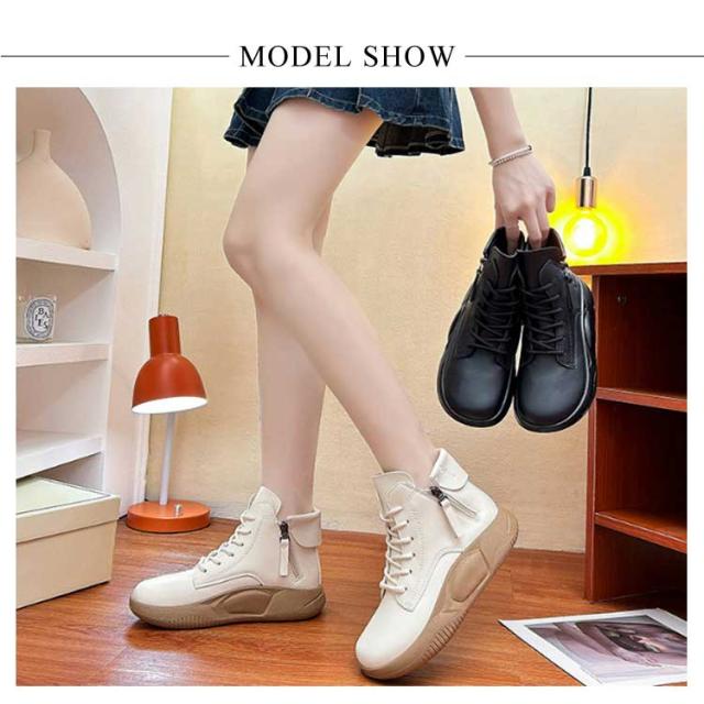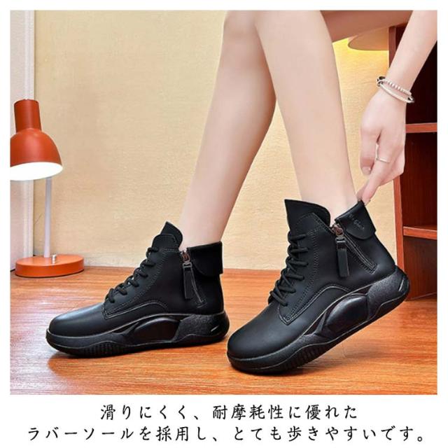 ハイカット スニーカー レディース サイドジッパー レディース ショートブーツ シューズ 外反母趾 歩きやすい 裏起毛 暖かい お洒落 スニーカー 厚底 コンフォートシューズ ウォーキング 歩きやすい 滑り止め 美脚 脚長効果 防寒対策 保温 送料無料