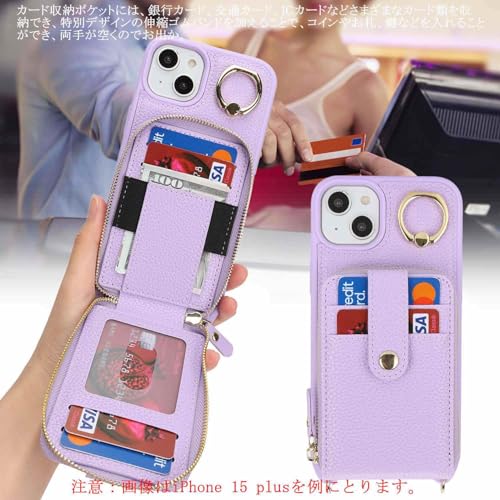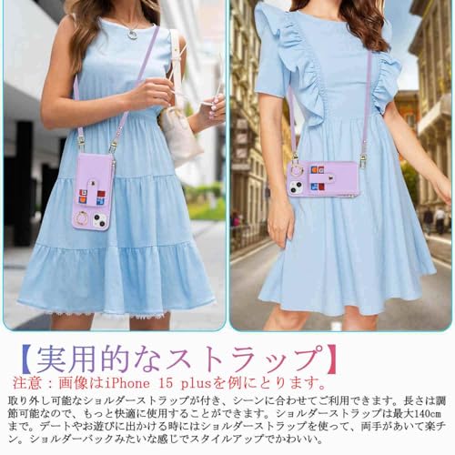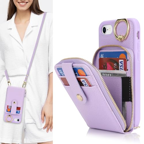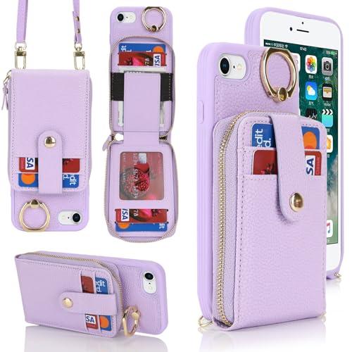 iPhone SE2 ケース 背面 手帳型 iPhone 7 / 8 背面 財布型ケース ショルダー 斜め掛け アイフォン se2 手帳型ケース ストラップ付き iPhone SE3 2022 カード入れケース ショルダーストラップ 肩掛け 首掛け-パープル