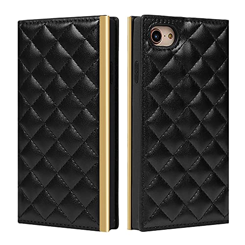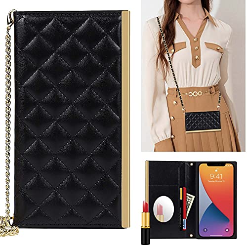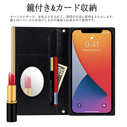 iPhone SE2 ケース 手帳型 iPhone SE 2020 対応 iPhone 7 / 8 スマホケースiPhone6 / 6s用に作られた手帳型 ケース PU ミラー付き 肩掛け 首かけ 斜めがけ ショルダー スト シンプル カードポケット ストラップ付き-ブラック