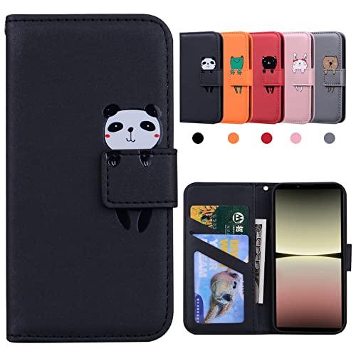 Xperia 10 V ケース 手帳型 エクスペリア 10V 携帯ケース Xperia 10 5世代 カバー 可愛い エクスペリア10V ケース Xperia 10V 手帳型ケース カード収納 財布付き スタンド機能 かわいい 動物柄 薄型 防水 ノート型 男女兼用 (黒)