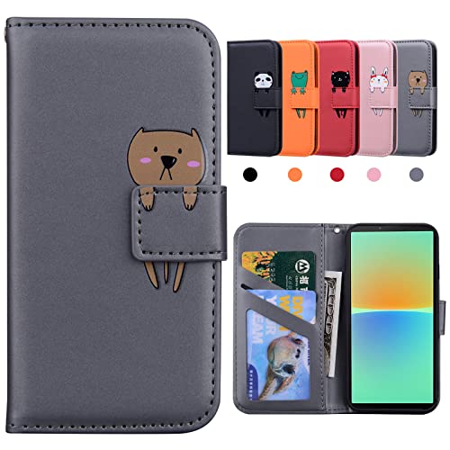 Xperia 10 IV ケース 手帳型 Xperia 10 IV SO-52C SOG07 携帯ケース Xperia 10 IV カバー 可愛い 手帳型ケース カード収納 財布付き スタンド機能 ソニー Xperia 10IV スマホケース かわいい 動物柄 薄型 防水 ノート型 男女兼用 (グレー)