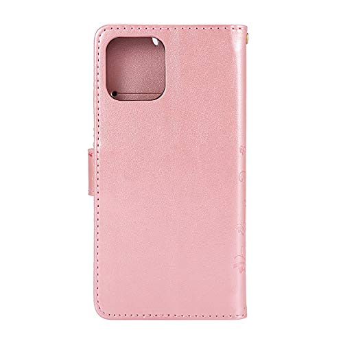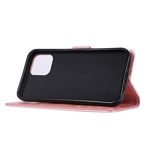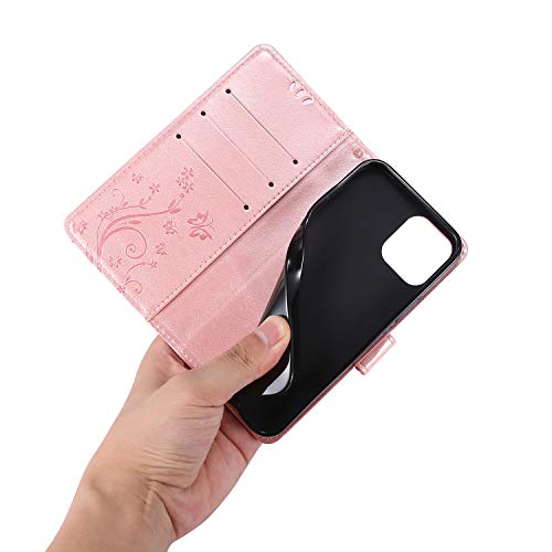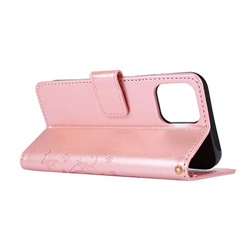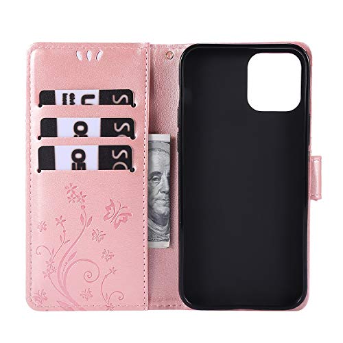 iPhone 12 / iPhone 12 Pro ケース 手帳型 カバー おしゃれ バタフライ PUレザー カード入れ アイフォン 12 財布型 スタンド 耐衝撃 防塵 耐久性 キラキラ 胡蝶 ラインストーン デコ メチャ可愛い ピンクゴールド
