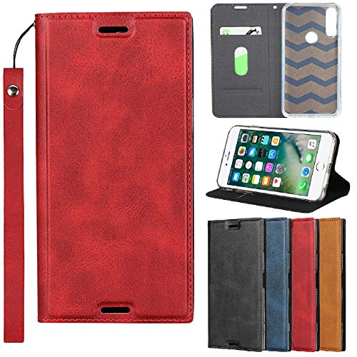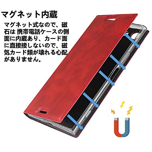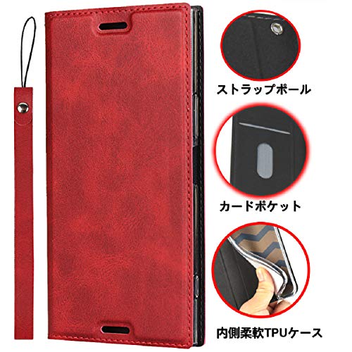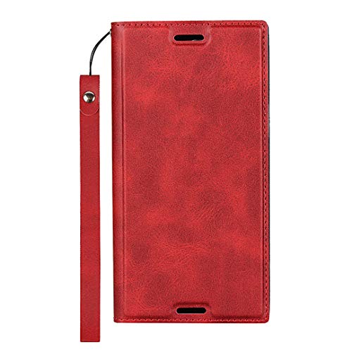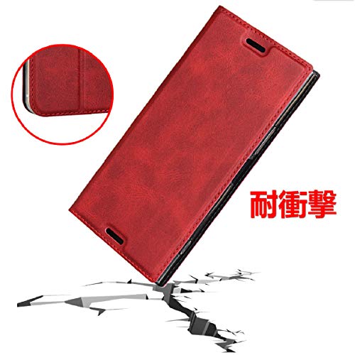 Xperia X Compact ケース 手帳型 ソニー SO-02Jケース 手帳 エクスペリア X Compact スマホケース カード収納 横置きスタンド 機能 軽量 超薄型 ベルト付き レッド