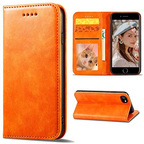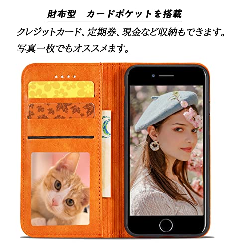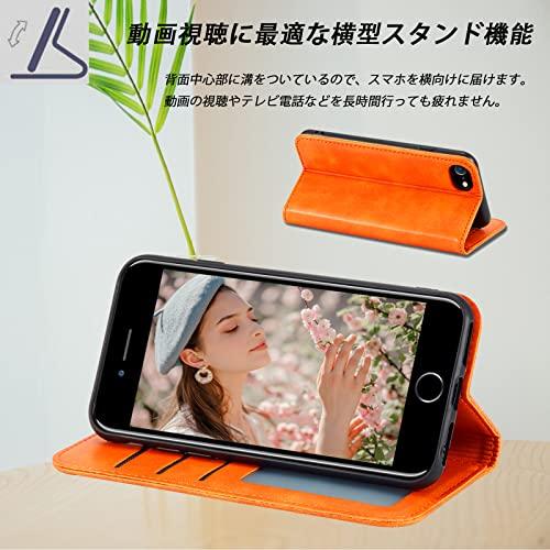 iPhone SE ケース 第3世代 iPhone SE(第2世代) ケース 手帳型 手帳型ケース カード収納 iphone case マグネット内蔵 スタンド機能 耐衝撃 薄型 軽量 防水 耐摩擦 シンプル 男女兼用 (iPhone7 / 8 / se 2020 / se 2022 4.7inch対応) オレンジ