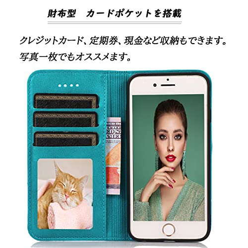 iPhone SE ケース 第3世代 iPhone SE(第2世代) ケース 手帳型 あいふぉん手帳型ケース カード収納 iphone case マグネット内蔵 スタンド機能 耐衝撃 薄型 軽量 防水 耐摩擦 シンプル 男女兼用 (iPhone7 / 8 / se 2020 / se 2022 4.7inch対応) ターコイズ グーリンっぽい
