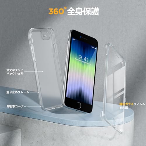 iPhone SE3 ケース SE2 第2世代 iPhone 8 スマホケース iPhonese カバー 4.7インチ 9H強化両面ガラス フルカバー ワイヤレス充電 (マットクリア)