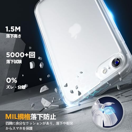 【耐衝撃TPU】ソフトな衝撃吸収性TPUバンパーにより、360°フルボディの頑丈なプロテクションをスマホに提供、ケースの四角を強化し、落下時の衝撃を軽減します。盛り上がったエッジは、落下やその他の衝撃から画面とカメラを保護します。