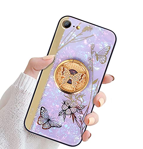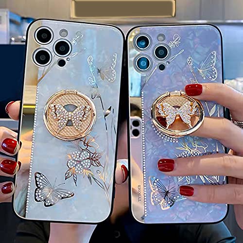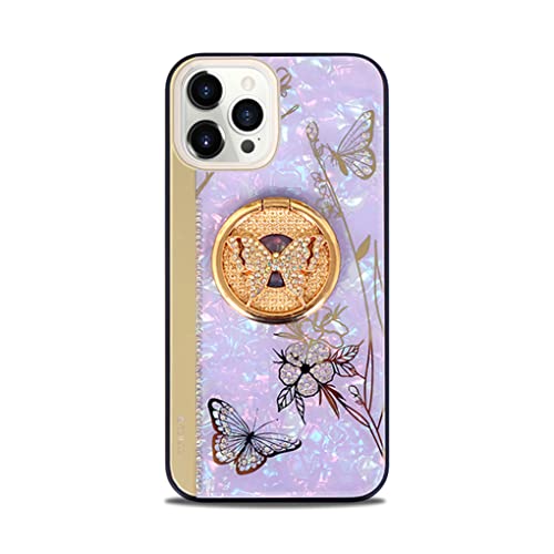 iPhone 14 Pro Max ケース 鏡として使える リング付き キラキラ かわいい バタフライ 軽量 薄型 耐衝撃 おしゃれ ストラップホール 携帯カバー アイフォン14 Pro Max カバー ケース (iPhone 14 Pro Max パープル)