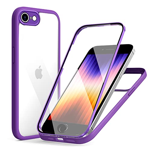 iPhoneSE3 第3世代 ケース iPhone7 iPhone8 iPhoneSE 第2世代 ケース 前面ガラス+背面ガラス 360°全面保護 100%画面タッチ感度 耐衝撃 強化ガラス フロント+バックプレート 軽量 ワイヤレス充電前後 両面 カバー (iphone7 / 8 / se2 / se3用 パープル) ...