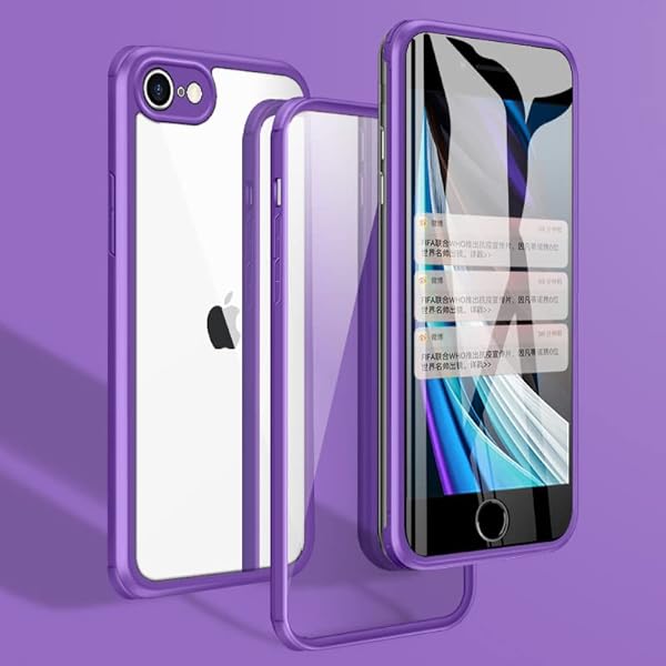 iPhoneSE3 第3世代 ケース iPhone7 iPhone8 iPhoneSE 第2世代 ケース 前面ガラス+背面ガラス 360°全面保護 100%画面タッチ感度 耐衝撃 強化ガラス フロント+バックプレート 軽量 ワイヤレス充電前後 両面 カバー (iphone7 / 8 / se2 / se3用 パープル)