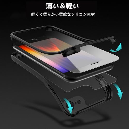 iPhoneSE3 第3世代 ケース iPhone7 iPhone8 iPhoneSE 第2世代 ケース 前面ガラス+背面ガラス 360°全面保護 100%画面タッチ感度 耐衝撃 強化ガラス フロント+バックプレート 軽量 ワイヤレス充電前後 両面 カバー (iphone7 / 8 / s