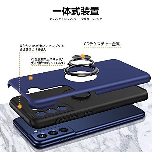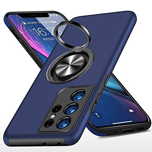 Galaxy S21 Ultra ケース リング付き PC TPU 耐衝撃 衝撃吸収 傷つけ防止カバー 全面保護 360度回転カバー ギャラクシー S21 Ultra スマホケース 車載ホルダースタンド機能 防塵 薄型 軽量 落下防止 人気 おしゃれ 携帯カバー 青