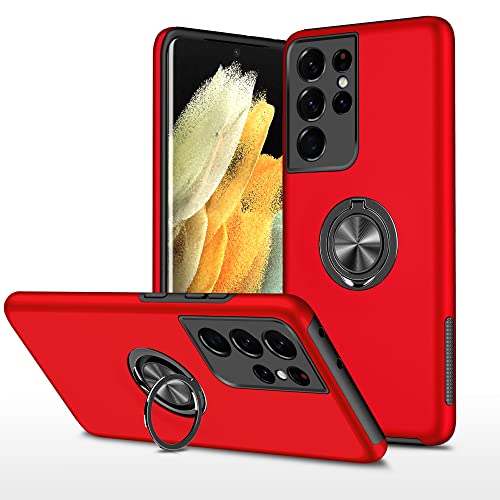 Galaxy S21 Ultra ケース リング付き PC TPU 耐衝撃 衝撃吸収 傷つけ防止カバー 全面保護 360度回転カバー ギャラクシー S21 Ultra スマホケース 車載ホルダースタンド機能 防塵 薄型 軽量 落下防止 人気 おしゃれ 携帯カバー 赤