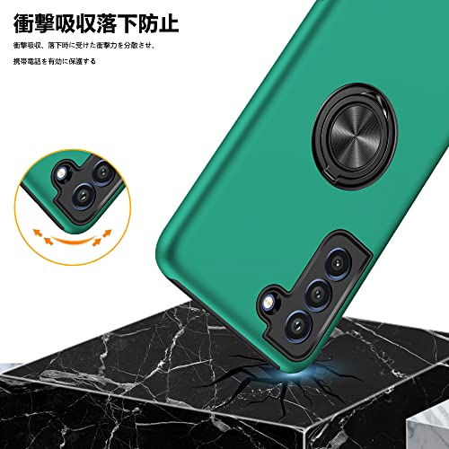 Galaxy S22 ケース リング付き PC TPU 耐衝撃 衝撃吸収 傷つけ防止カバー 全面保護 360度回転カバー ギャラクシー S22 スマホケース 車載ホルダースタンド機能 防塵 薄型 軽量 落下防止 人気 おしゃれ 携帯カバー 緑