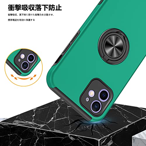 iPhone 11 Pro ケース リング付き PC TPU 耐衝撃 衝撃吸収 傷つけ防止カバー 全面保護 360度回転カバー アイフォン 11 Pro用 スマホケース 車載ホルダースタンド機能 防塵 薄型 軽量 落下防止 人気 おしゃれ 携帯カバー 緑