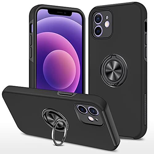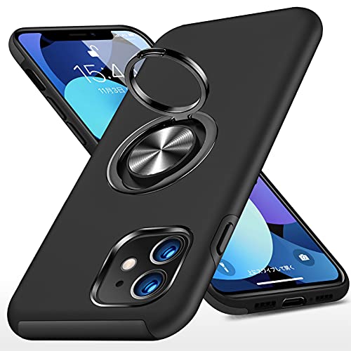 iPhone 12 ケース リング付き PC TPU 耐衝撃 衝撃吸収 傷つけ防止カバー 全面保護 360度回転カバー アイフォン 12用 スマホケース 車載ホルダースタンド機能 防塵 薄型 軽量 落下防止 人気 おしゃれ 携帯カバー 黒