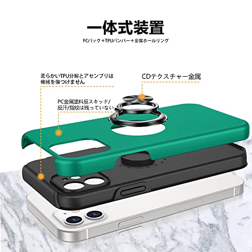 iPhone 13 ケース リング付き PC TPU 耐衝撃 衝撃吸収 傷つけ防止カバー 全面保護 360度回転カバー アイフォン 13用 スマホケース 車載ホルダースタンド機能 防塵 薄型 軽量 落下防止 人気 おしゃれ 携帯カバー 緑