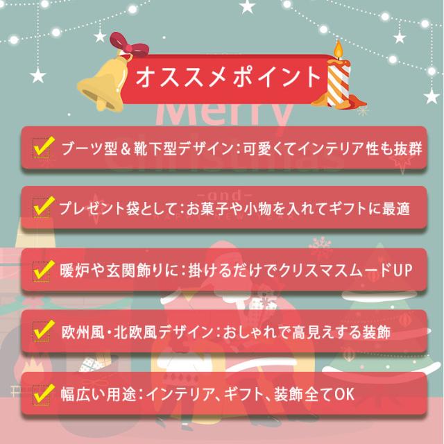 クリスマス ブーツ 靴下 サンタブーツ クリスマスソックス プレゼント袋 お菓子入れ 袋 壁掛け 暖炉 玄関飾り 欧州風 北欧風 インテリア 部屋飾り クリスマスギフト おしゃれ 人気