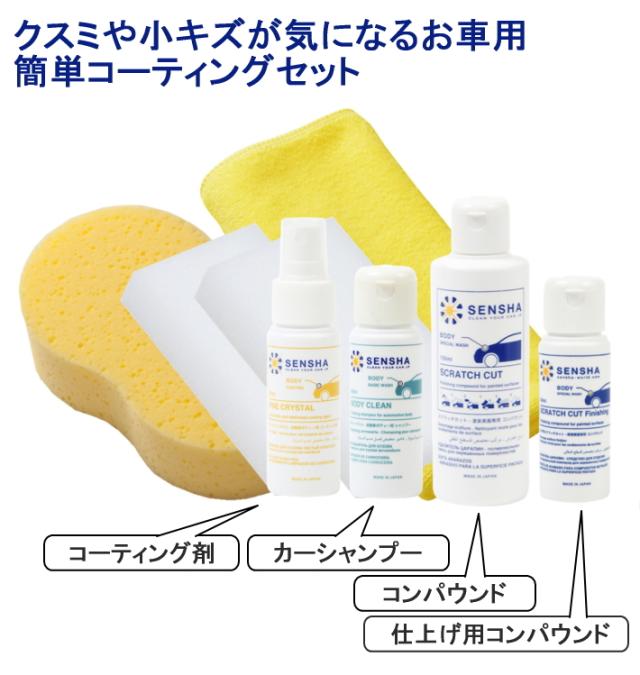 洗車セット ガラスコーティング剤 カーシャンプー コンパウンド 研磨剤 ファインクリスタル ボディークリーン スクラッチカット