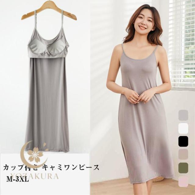 カップ付き キャミワンピ キャミワンピース インナーワンピース ロングキャミソール ペチコート 防止 インナー 下着