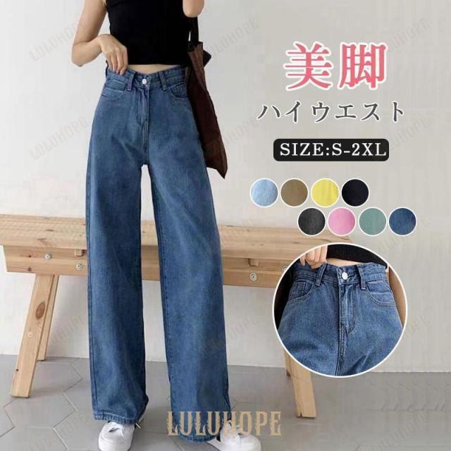 ★★ ワイドデニムパンツ ジーンズ バギーパンツ デニムパンツ ハイウエスト ストレート ワイド ロング丈 ゆったり レディース