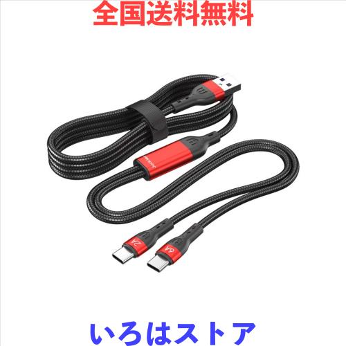 ?【2台同時に充電可能の便利さ】本製品は二股Type-C端子を装着された2in1 充電ケーブルです。タイプC搭載のデバイスに2台同時に急速充電でき、一本ニ役で超便利です。自宅、オフィス、車内、旅行等色々なシーンで、1本だけを持つと十分です。?【理想的な長さ】2in1 USB Type Cケーブルは、距離を気にすることなく日常生活におけるあらゆる接続ニーズに満足できる長さで、部屋、オフィス、車の後部座席などで使い勝手がよいです。分岐の長さも35cmあるので、家族や友達と充電共有が可能となります。?【安全かつ高速充電】PD(66W/6A)急速充電に対応しているCタイプ ケーブルは銅製の芯線を採用し、電気抵抗が少なくて、導電性と安全性を確実に確保し、最大5 V/6 Aまで安全に急速充電できます。▲ご注意:このType-C充電は最大6Aの電流をサポートしますが、電源アダプタも同じくPD充電に対応する必要、前段のパワー不足により、後段のデバイスが同時に高速充電を中断したり、充電が遅くなったり、反応がなくなるなどの現象が生じる可能性があります。 この場合は不良品ではないので、ご注意ください。?【幅広い用途】Huawei/xiaomi/oppo/vivo/iphone 15/Samsung/Googleなどの機種に対応。USB 2.0により最大480Mbpsのデータ転送速度をサポートし、ハイスピードで転送可能です(6A端子ハイスピードで転送可能です)。