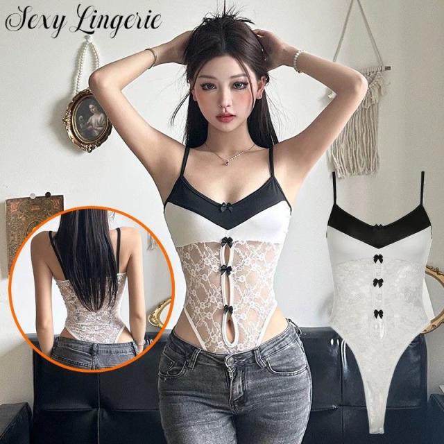 セクシーランジェリー 女性用 テディ レオタード 水着風コスチューム キャミソール コスプレ レース シースルー リボン 美背中