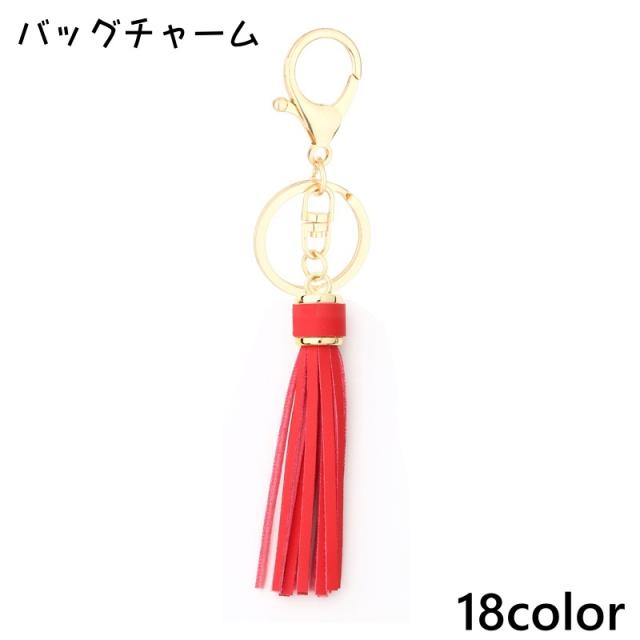 バッグチャーム キーホルダー キーリング タッセル フリンジ カラビナ レザー調 おしゃれ かわいい シンプル カジュアル カラ