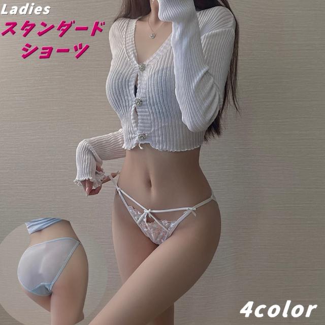 スタンダードショーツ パンツ レディース 女性 婦人 インナー 下着 刺繍 シースルー 透け感 薄手 サイド紐 花柄 フラワー