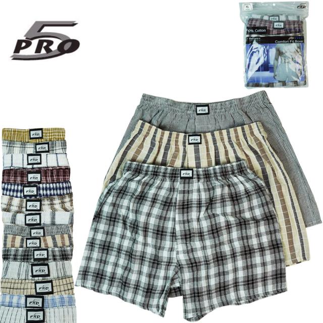 【クリックポスト対応可】プロ5 PRO5メンズ パンツCOMFORT FIT BOXER 3PCコンフォート フィット ボクサーパンツ 3枚セットストライプ チェック ギンガム男性用 USA アソート アンダーウェア トランクス ロサンゼルス HIPHOP チカーノ 下着