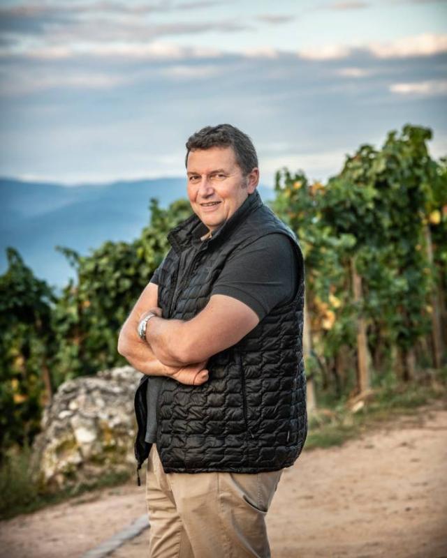 ドメーヌ・ツィント・フンブレヒトの経営者であり醸造家でもある12代目当主、オリヴィエ・フンブレヒト氏は、世界で最難関と言われるワイン資格“マスター・オブ・ワイン”(MW)を1989年に26歳の若さで取得しました。これは、その当時、フランス人としては初めて、ワインメーカーとしても二人目という快挙です。2002年からは国際ビオディナミ生産者組合会長となり、2011年からはアルザス・グラン・クリュ協会会長としても、ワイン産業全体の発展に寄与しています。まさにアルザス、次世代のリーダー的存在。