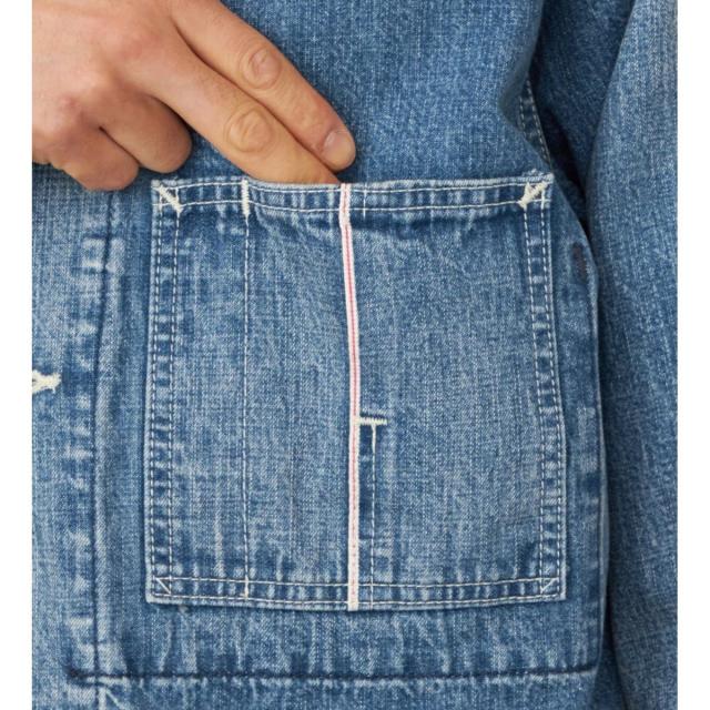 ウォッチポケットや平行ステッチといったヴィンテージカバーオールのディテールを踏襲しつつ、胸ポケットや背面には耳使いを施しセルビッジを表現。さらに、カバーオールでは珍しいレザーパッチを取り入れることで、505らしい存在感を加えています。
