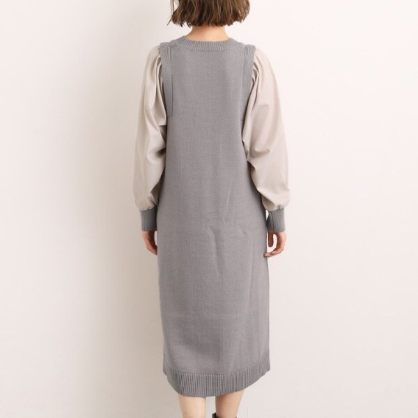 グローブ(grove)/【石川梨華さん着用】一枚で華やぐ、袖布帛ケーブルニットワンピース