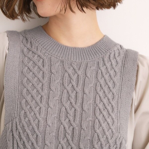 前身頃は立体感のあるケーブル編み、後身頃は天竺編みですっきりと。
