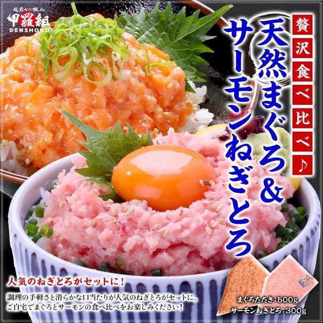 天然まぐろ&サーモンねぎとろ食べ比べセット マグロ ネギトロ たたき 海鮮 鮭 冷凍 海鮮丼 寿司 簡単 時短 サーモントラウト ちらし寿司 手巻き寿司 ねぎとろ丼 業務用 年末お届け可能 冬ギフト 年末年始