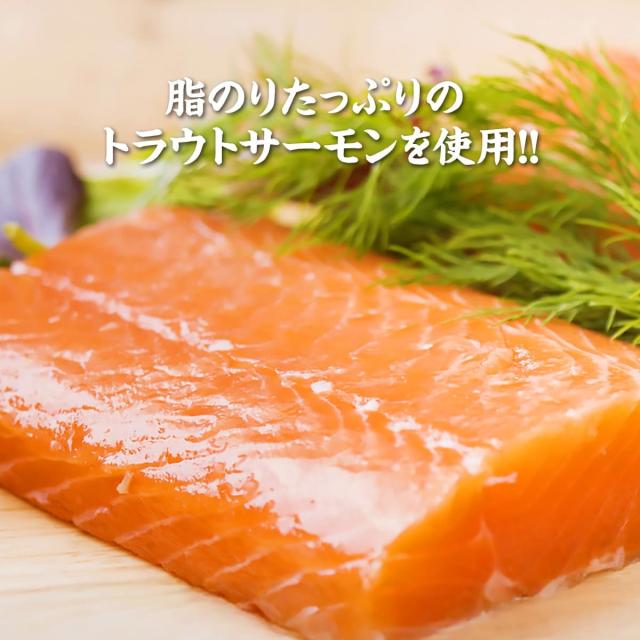 <原材料>サーモントラウト(アルゼンチン、ペルー、その他)、植物油脂/pH調整剤、トレハロース、酸化防止剤(V.C、V.E)
