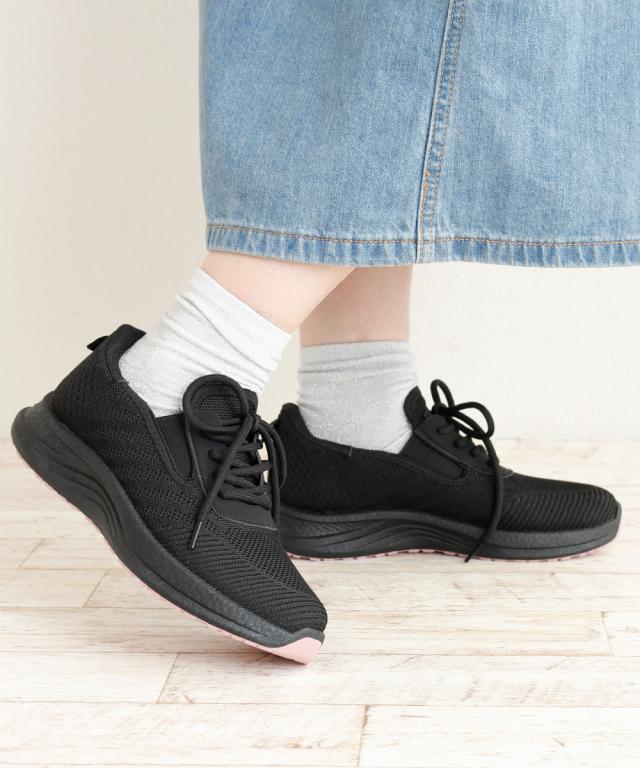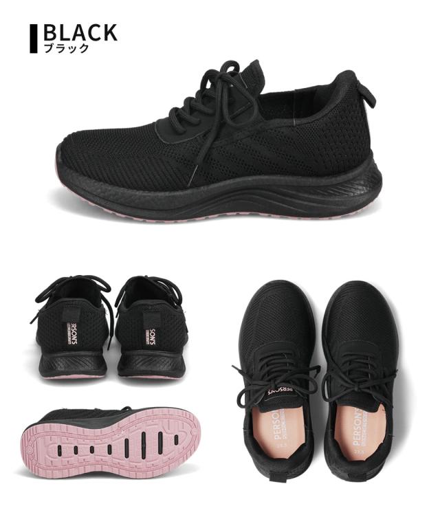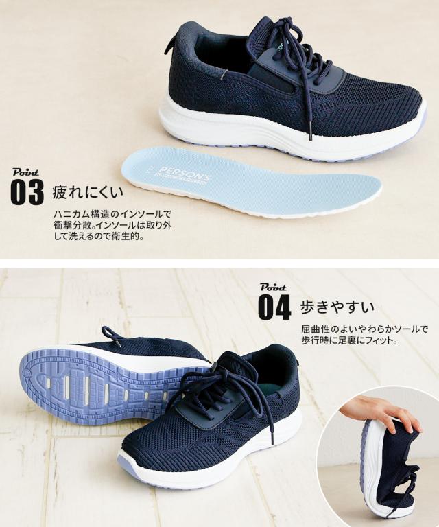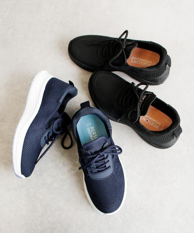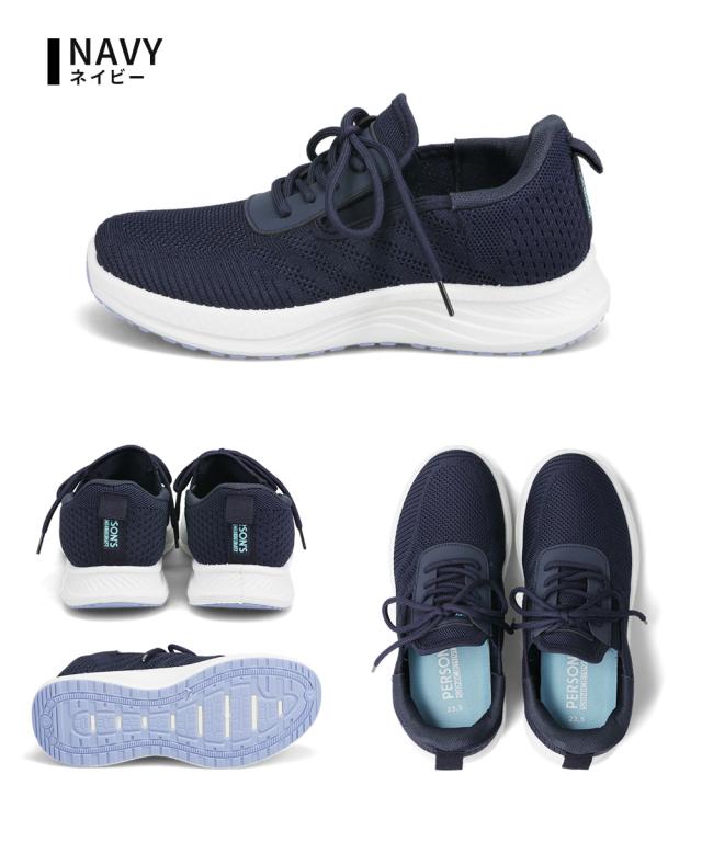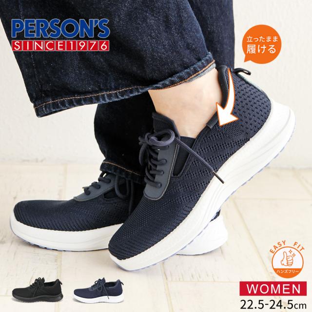 レディース スニーカー ニットスニーカー 黒 ハンズフリー 立ったまま履ける 通気性 メッシュ ローカット 軽い ジュニア 運動靴 履きやすい 蒸れにくい 疲れにくい カジュアル ウォーキング フィットネス パーソンズ PERSON'S ブラック ネイビー 5829