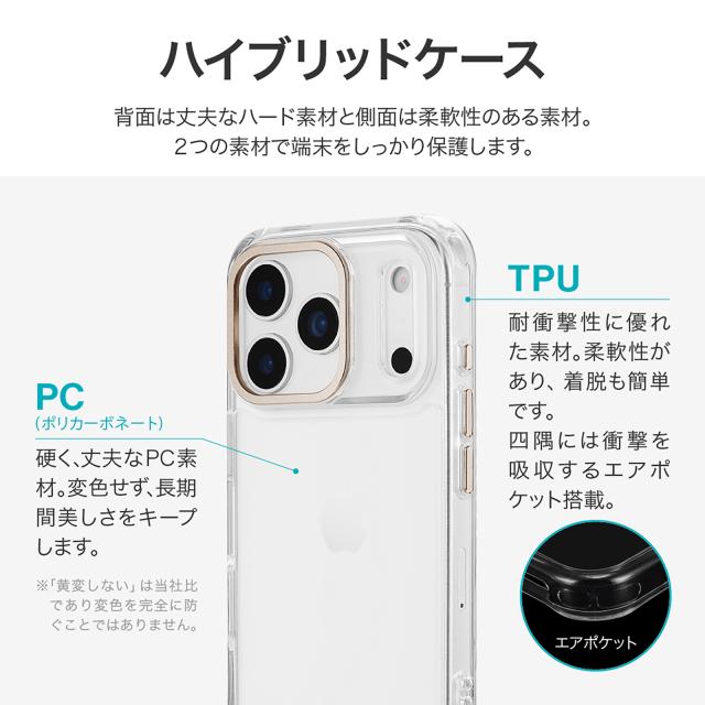 iPhone17Pro ケース mycam シャンパンゴールド 耐衝撃 ハイブリッドケース カメラ保護 アルミフレーム ポリカーボネート TPU エアークッション搭載 柔軟 ボタン保護 スマホケース カバー アイフォン17プロ シンプル おしゃれ レディース おすすめ 人気 プレゼント