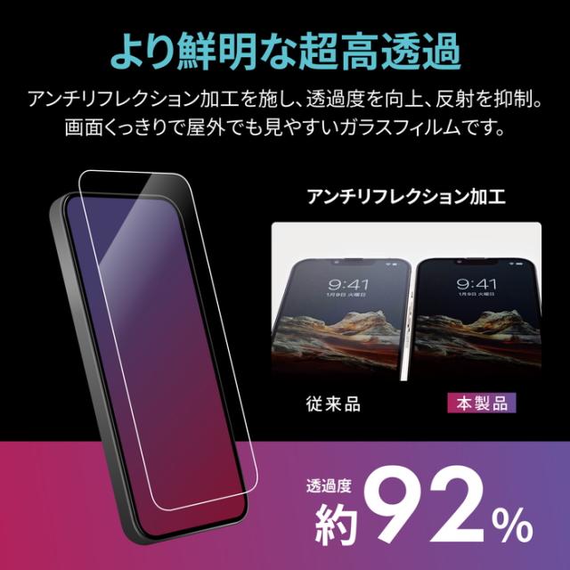 iPhone17ProMax iPhone 16 Pro Max ガラスフィルム GLASS PREMIUM FILM Lite 高透過 約92% ブルーライトカット 超硬度10H 表面強化ガラス ケース干渉しない 全画面保護 指紋防止 黄色くならない 高透過率 貼り付けキットLite付属 画面保護 おすすめ 人気 目に優しい