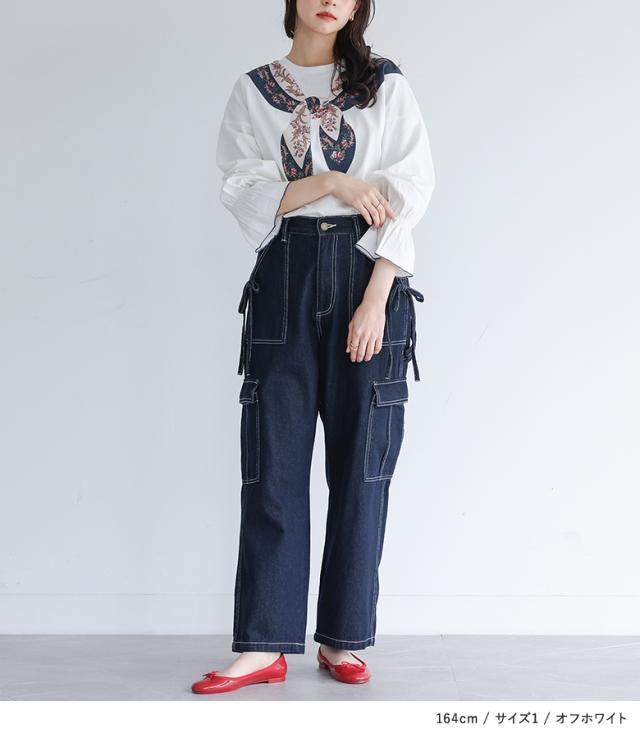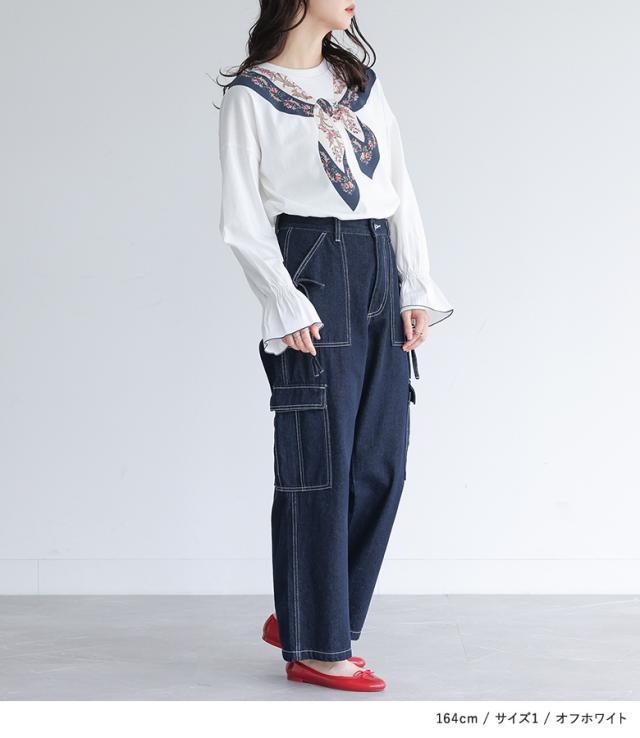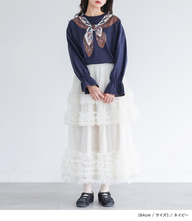 カットソー 長袖 レディース トップス ロンT プリントT トロンプルイユプリント スカーフ 綿100% コットン100% キャンディースリーブ 秋 冬 春 【TP】 Tシャツ プリントTシャツ プルオーバー クルーネック ホワイト 白 オフホワイト キャンディスリーブ 袖コンシャス ショート丈 ミディ丈 ミドル丈 花柄 プリント柄 無地 レイヤード 重ね着 ロングシーズン カジュアル レトロ クラシカル シンプル ナチュラル キレカジ フェミニン ガーリー ゆったり ゆる 楽ちん Sサイズ Mサイズ Lサイズ LLサイズ 3Lサイズ XLサイズ ぽっちゃり 体型カバー 大きいサイズ プラスサイズ 10代 20代 30代 40代 50代 60代 低身長 高身長 女子会 オフィス 通勤 通学 お買い物 お出掛け 旅行 リゾート レジャー おしゃれ お洒落 トレンド 流行 somari imagination ソマリイマジネーション 可愛い系 大人女子 大人可愛い お洒落可愛い 大人カジュアル 上品 きれいめ osharewalker オシャレウォーカー おしゃれうぉーかー ネイビー 紺[ID]13to0h7