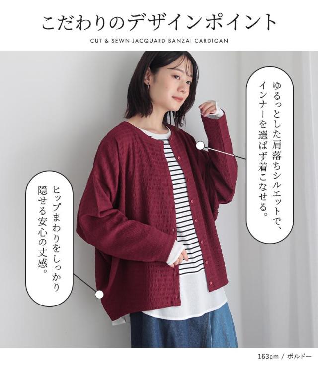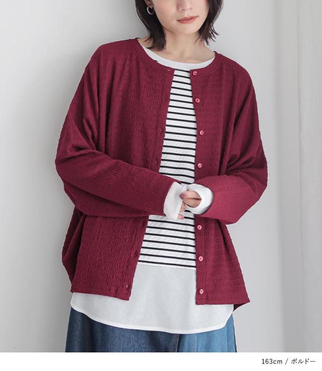 カーディガン 長袖 レディース トップス 羽織 カットソー クルーネック ジャカード ヒップが隠れる 体型カバー 春 夏 【TP】 羽織り ライトアウター n'OrLABEL ノア—ルレーベル 大人女子 大人可愛い お洒落可愛い 大人カジュアル ベーシック ニュアンス ラフ エフォートレス 上品 きれいめ ナチュラル ドルマンスリーブ ミディ丈 ミドル丈 ドロップショルダー ビッグシルエット オーバーサイズ バンザイシルエット 変形 ドレープ 無地 ジャガード おうちで洗える ストレッチ 秋 カジュアル シンプル キレカジ フェミニン ガーリー 可愛い系 ゆったり ゆる 楽ちん ストレスフリー 動きやすい お尻が隠れる 二の腕カバー Sサイズ Mサイズ Lサイズ LLサイズ 3Lサイズ XLサイズ フリーサイズ ぽっちゃり 大きいサイズ プラスサイズ 10代 20代 30代 40代 50代 60代 女子会 通学 お買い物 お出掛け 旅行 osharewalker オシャレウォーカー おしゃれうぉーかー レッド 赤 ボルドー ブルー 青 グリーン 緑 ブルーグリーン ブラック 黒[ID]13to08r[n'OrLABELカットソージャカードバンザイカーディガン]