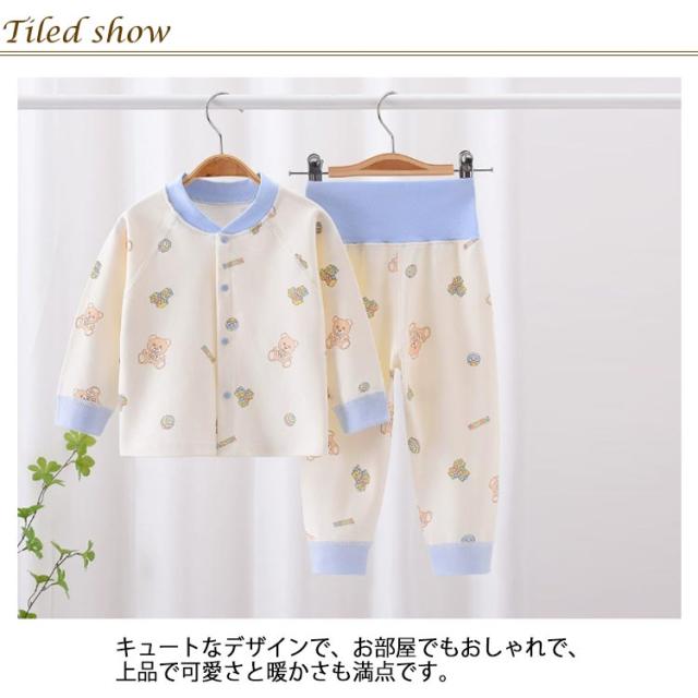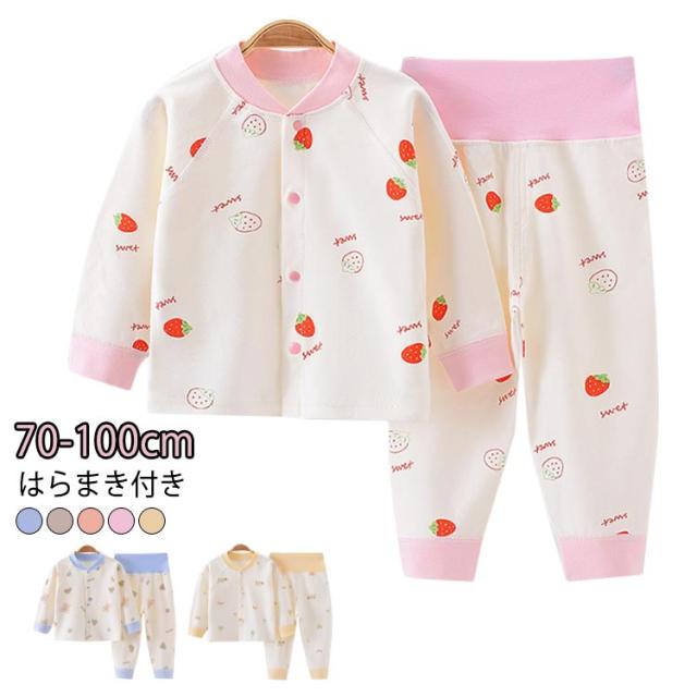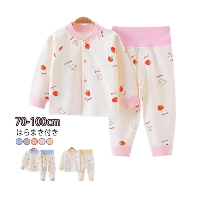 ベビーパジャマ 腹巻付き 前開き 上下セット 2点 長袖 パジャマ 80 90 100 ベビー 寝具 セットアップ ベビー服 パジャマ ルームウェア ベビーパジャマ ベビールームウェア 室内着 お昼寝 総柄 春 秋 冬